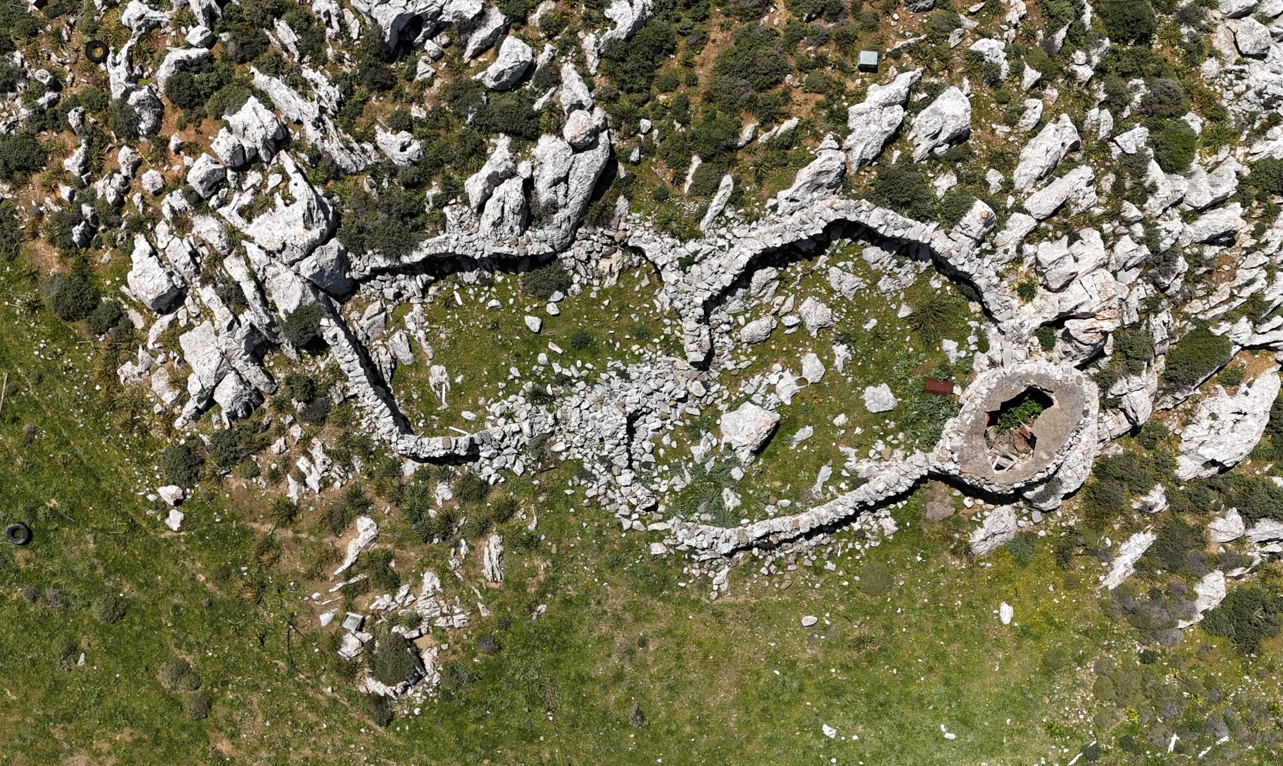 - Υλικά Κατασκευής: Τοπική ακατέργαστη πέτρα (σχιστόλιθος ή ασβεστόλιθος), χωρίς συνδετικό υλικό – ξερολιθική τεχνική.